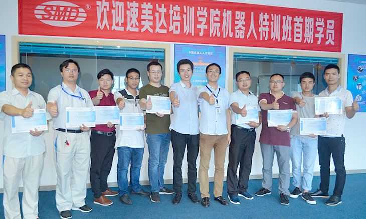 速美達工業(yè)機器人應(yīng)用培訓(xùn)學(xué)院(簡稱:速美達培訓(xùn)學(xué)院),前身為2006年成立的速美達培訓(xùn)部。學(xué)院以員工成長和客戶服務(wù)價值提升為己任,以滿足內(nèi)部人才需求、為客戶培養(yǎng)和輸送人才為辦學(xué)宗旨,站在行業(yè)發(fā)展高度,系統(tǒng)梳理近10多年工業(yè)機器人應(yīng)用實踐經(jīng)驗,構(gòu)建“速美達培訓(xùn)學(xué)院”教學(xué)體系和發(fā)展思路,為行業(yè)發(fā)展作出應(yīng)有的貢獻,并于 2016年10月正式掛牌成立。