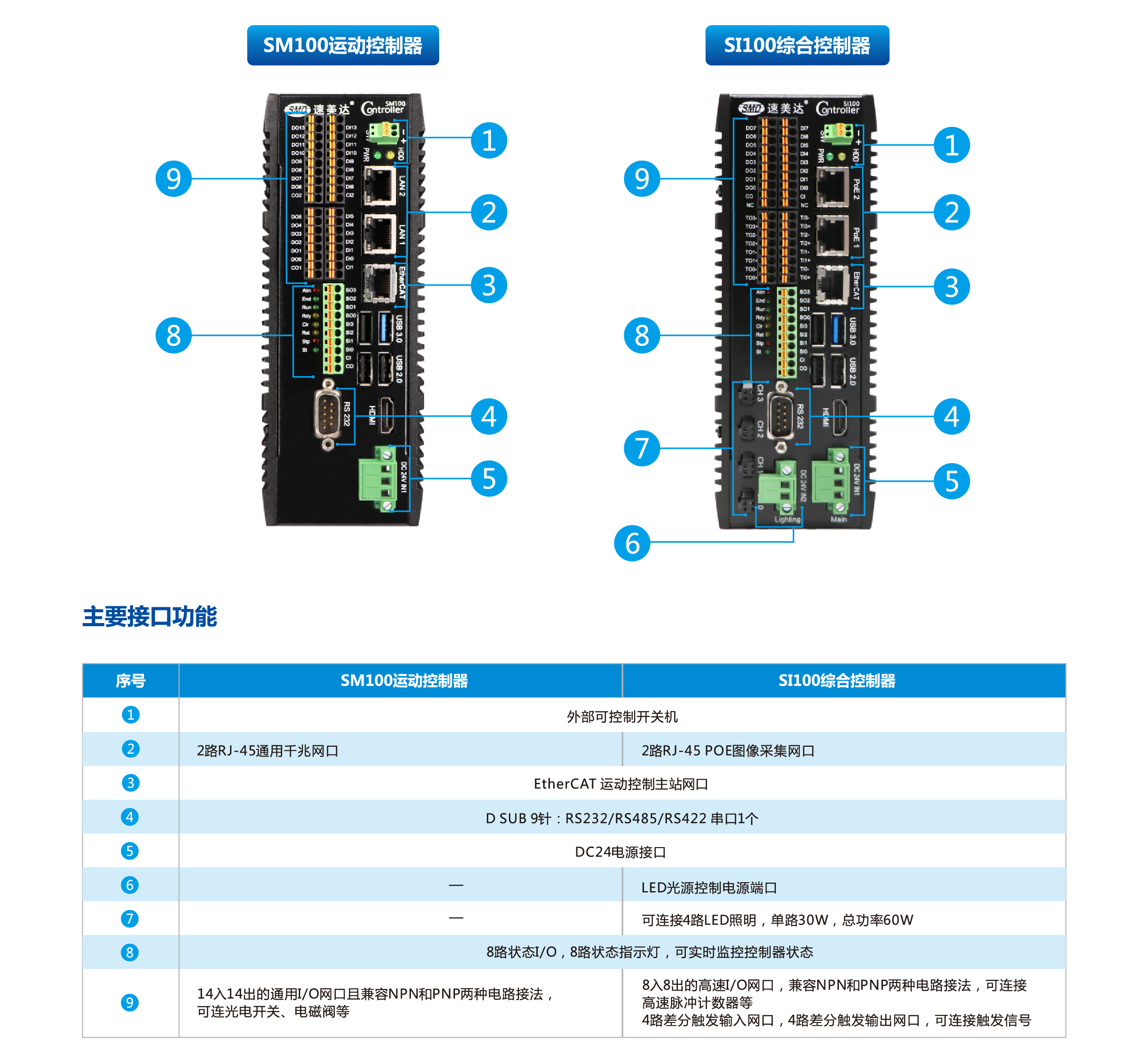 SM100/SI100系列經(jīng)濟(jì)型控制器性價(jià)比高,可控制到32軸,其中包含1套機(jī)器人運(yùn)動(dòng)模型控制,SI100可帶視覺(jué)算法功能,可與機(jī)器人、平臺(tái)配合完成精密裝配動(dòng)作。