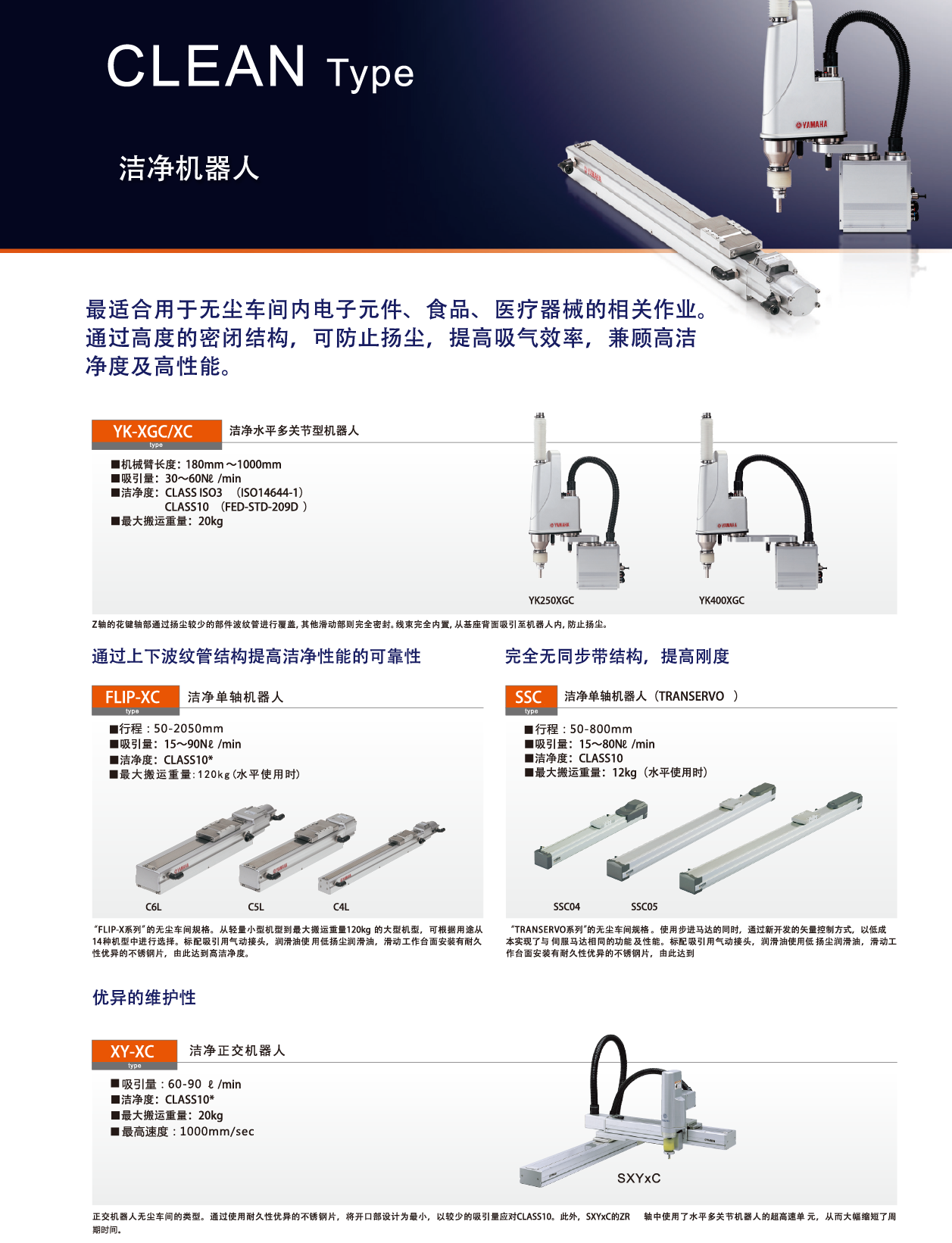 YAMAHA 潔凈型機(jī)器人CLEAN